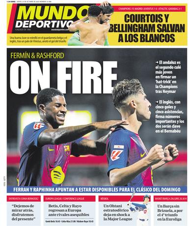 Fermín viene de golear con un ‘hat-trick’ al Olympiacos en la Champions y su titularidad en el Clásico en el Santiago Bernabéu se da por segura. Su confianza es hoy superlativa, como también la del...