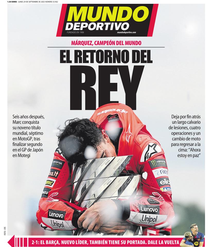 arc Márquez ya está en paz, después de superar un infierno. Sí, fue más que un número. Fue la demostración de una leyenda del deporte de que es posible volver a ser campeón del mundo tras casi cinco...