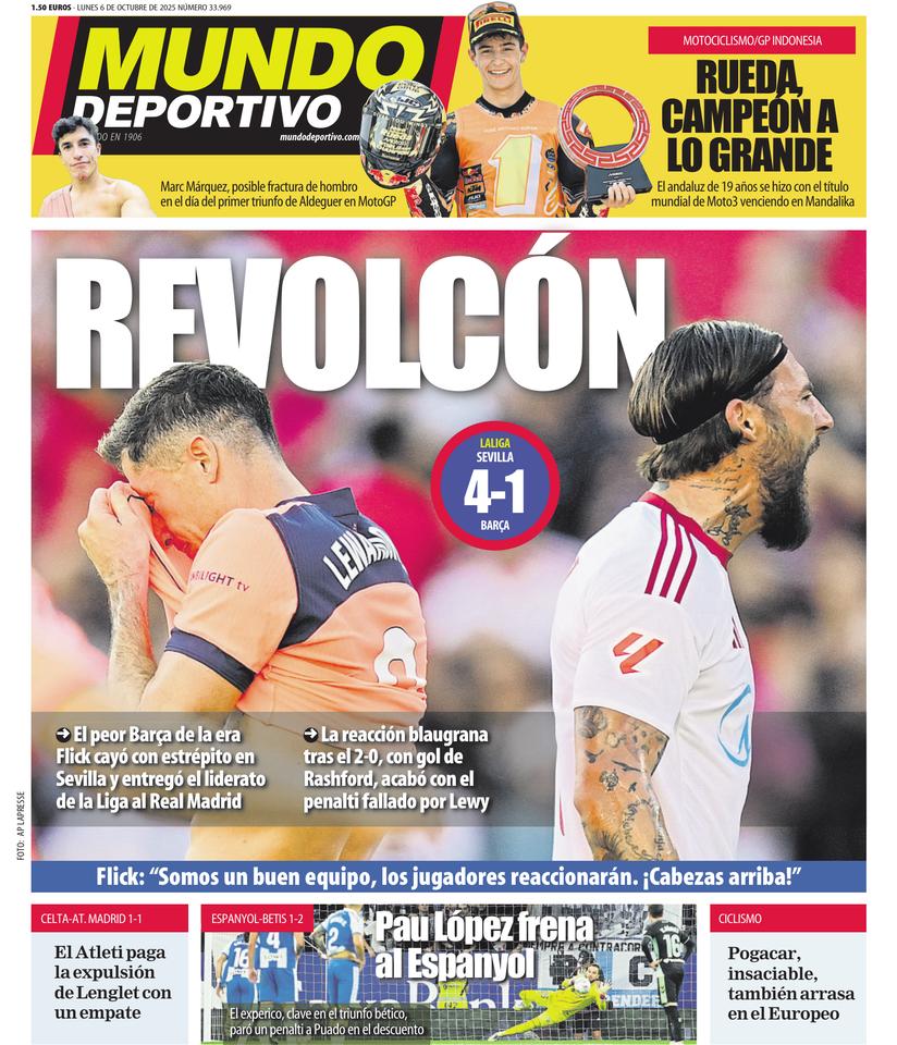 El peor Barça de la ‘era Hansi Flick’ , falto de energía y de fútbol, cayó goleado 4-1 en el Ramón Sánchez Pizjuán por un enorme Sevilla, más intenso en el inicio para colocarse 2-0 y más certero al...
